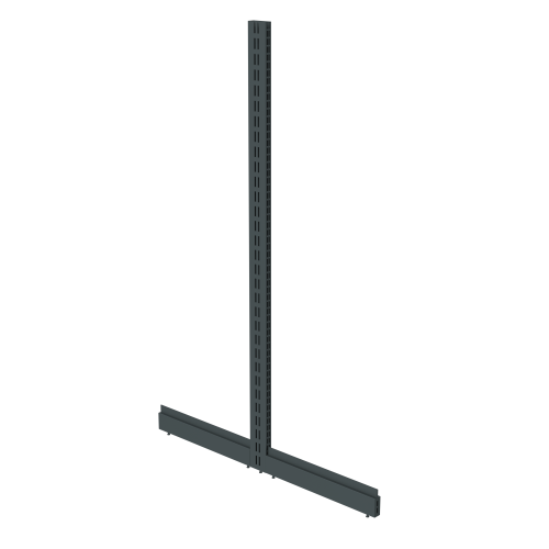 - Г-образная или Т-образная конструкция ноги обеспечивает стабильную поддержку стеллажей;