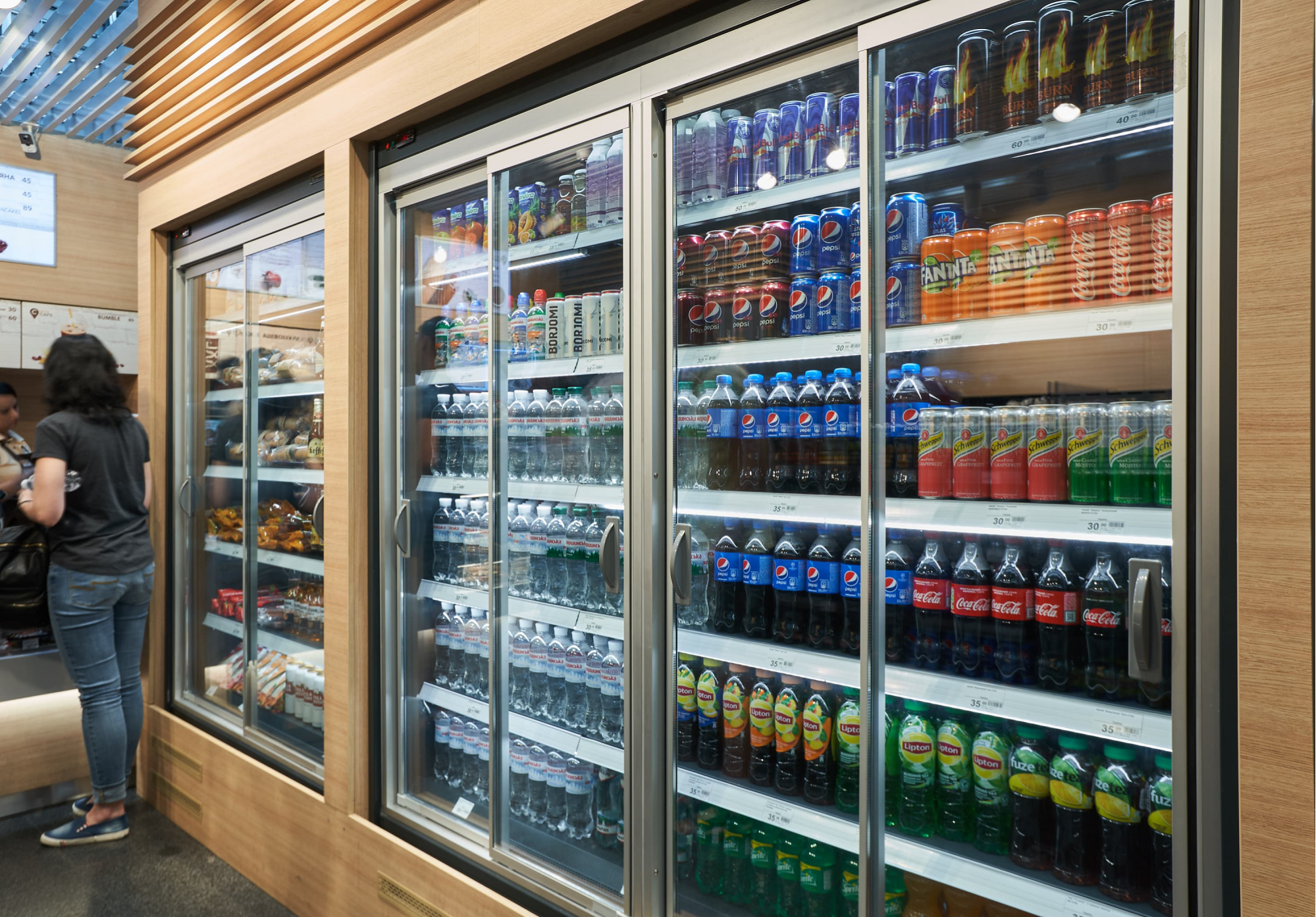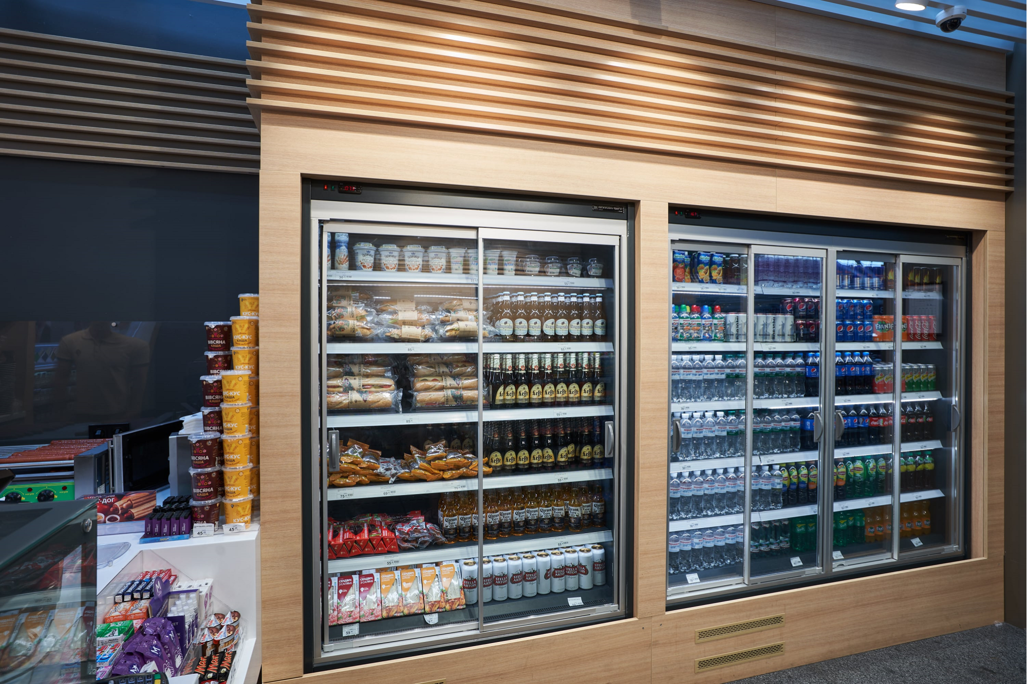 Наша компания предлагает брендированное оборудование для АЗС, которое включает в себя: стеллажное оборудование, холодильные витрины для скоропортящихся продуктов и напитков (со встроенным агрегатом и без него), конфитюры для сладостей, а также мебель для зоны кафе: столы, стулья и барные стойки. Все выполнено в одной стилистике, в одной цветовой гамме. Ничего лишнего, но есть самое необходимое. Для установки кофе машин - кофемодуль со встроенными стаканами, мусорным баком и выведенными коммуникациями - главные части выполнены из нержавеющей стали.