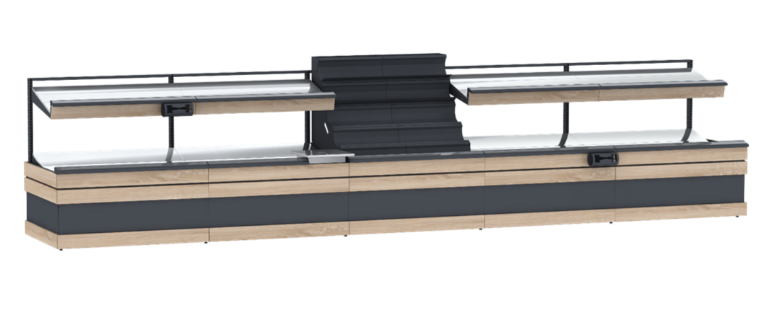 Стеллаж для овощей 1350х3780х1075 мм позволяет легко и быстро организовать и разместить овощи. Таким образом покупатели могут легко найти и выбрать продукты. Это также удобно для продавцов, которые могут быстро перекладывать овощи с одного уровня на другой для поддержания свежести.