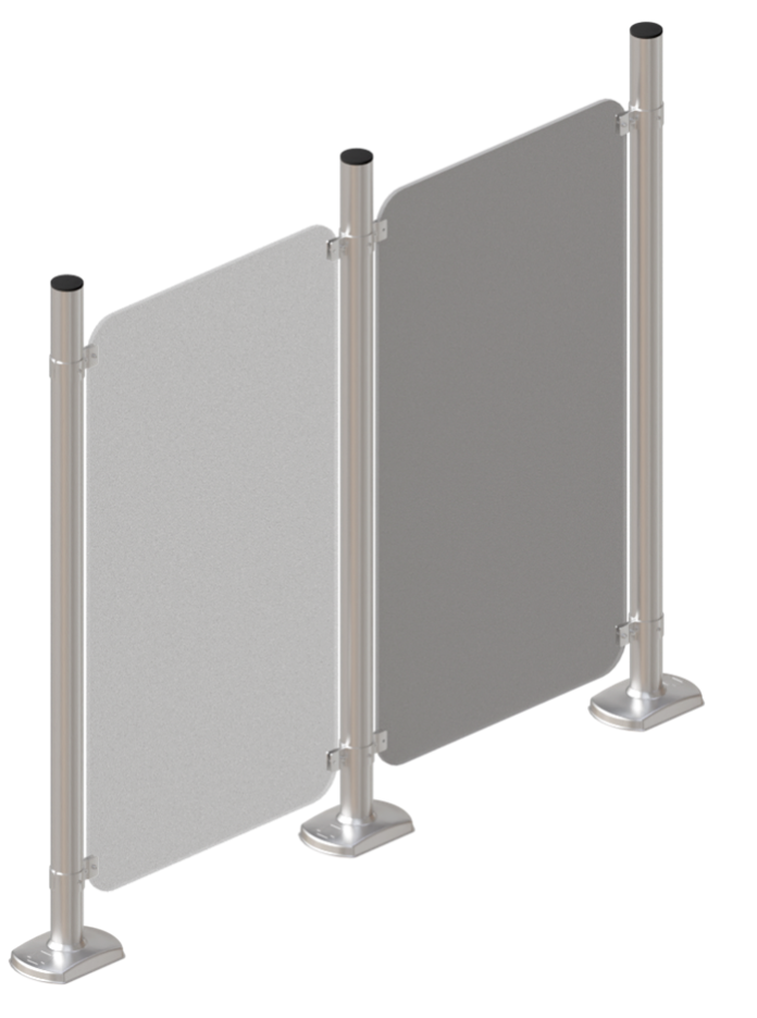 - высокие ограждения с решетчатыми или акриловыми панелями - используются также для организации пространства внутри магазина; благодаря своей высоте, легко могут позволить выделить отдельный торговый зал без строительно-ремонтных работ; также устанавливаются по периметру торгового зала для усиления пропускного контроля во избежание краж;