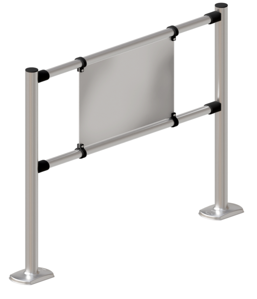 - высокие ограждения с решетчатыми или акриловыми панелями - используются также для организации пространства внутри магазина; благодаря своей высоте, легко могут позволить выделить отдельный торговый зал без строительно-ремонтных работ; также устанавливаются по периметру торгового зала для усиления пропускного контроля во избежание краж;