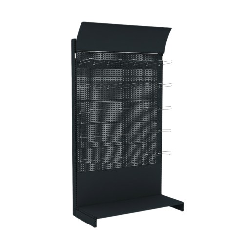 - Перфорированная поверхность: специальные отверстия на стойке, используемые для крепления крючков, держателей или других элементов для размещения продукции, брошюр или аксессуаров. Это обеспечивает гибкость в организации пространства.