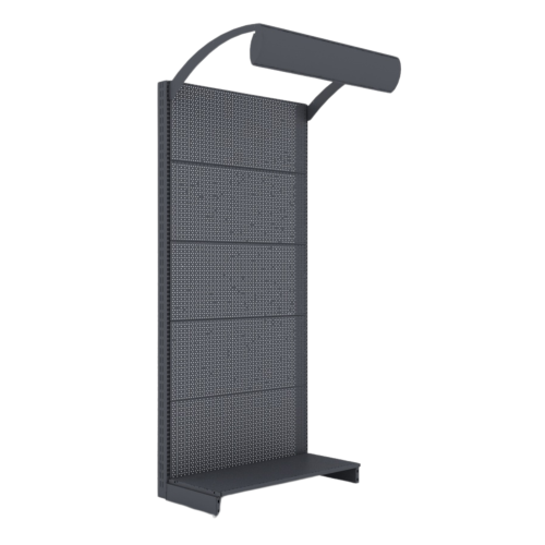 - Перфорированная поверхность: специальные отверстия на стойке могут использоваться для крепления крючков, держателей или других элементов для размещения продукции, брошюр или аксессуаров.