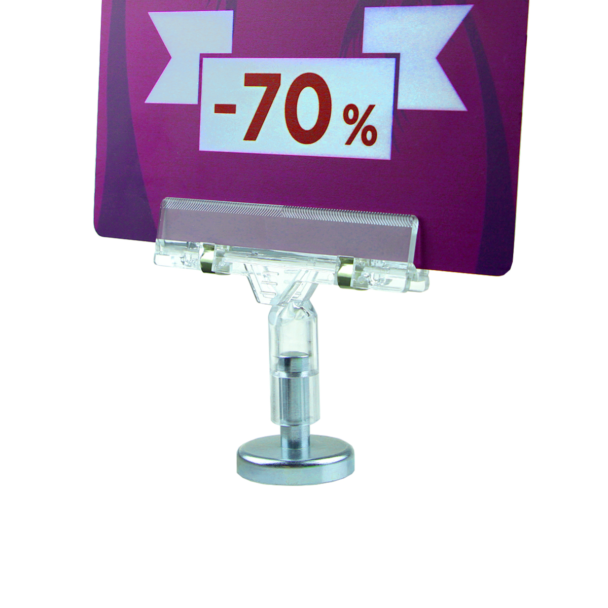 Благодаря мощному магниту с силой притяжения 12 кг, подставка надежно держится на металлических поверхностях, обеспечивая устойчивость даже при использовании больших рамок или табличек.