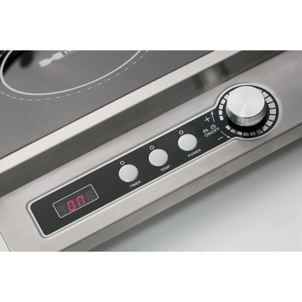 Плита HURAKAN HKN-ICF70D оборудована электронным таймером до 120 минут, защитой от перегрева и кнопочной панелью управления с активными джойстиками. Плита работает при 13 уровнях нагрева, в диапазоне температур от 60 до 280°С.