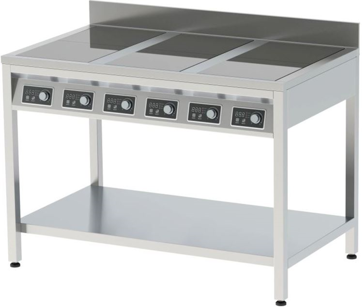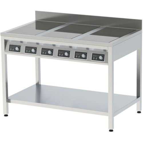 Плита индукционная напольная с бортом ПИН-6 имеет: 6 зон нагрева; 9 степеней мощности; таймер; температурный режим.