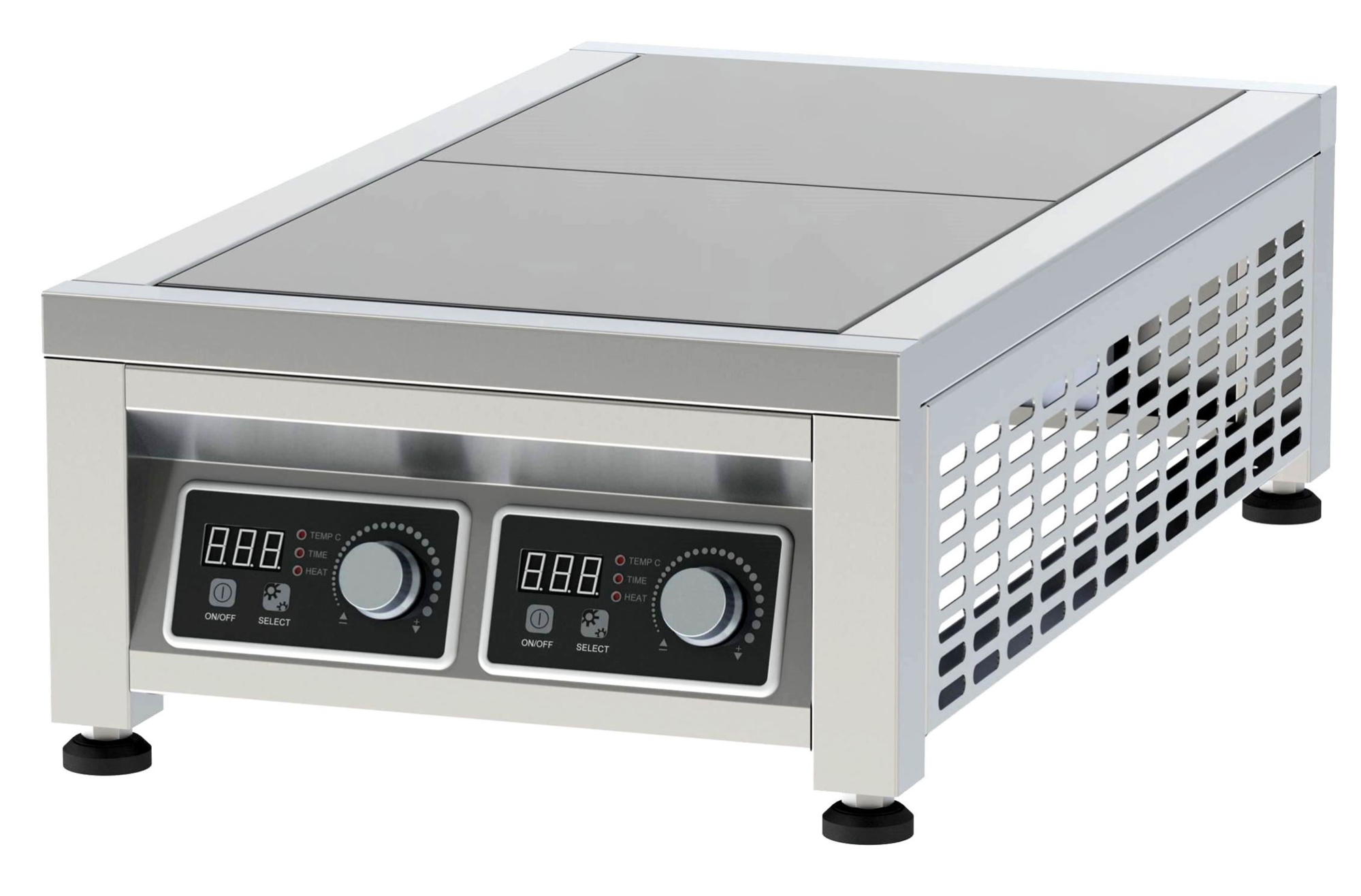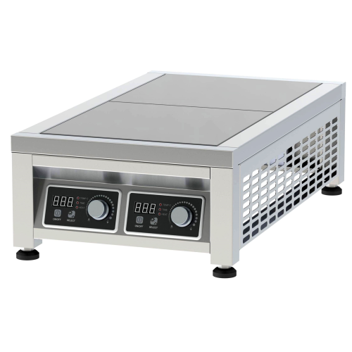 Плита индукционная настольная ПИН-2 имеет: 2 зоны нагрева; 9 степеней мощности; таймер; температурный режим Стеклокерамическая поверхность 4 мм. Поверхность герметично крепится к корпусу из нержавеющей стали. Максимальная мощность каждой конфорки – 3,5 кВт. Плита имеет 9 уровней мощности, размер конфорки 320ммх320мм. Поверхность нагревается только при контакте с посудой, если диаметр меньше посуды – нагрев происходит только в зоне контакта. Автоматическое отключение плиты при снятии посуды.
