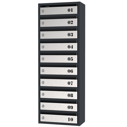 Почтовый ящик Flat металлический на 10 ячеек с дверцами из нержавеющей стали