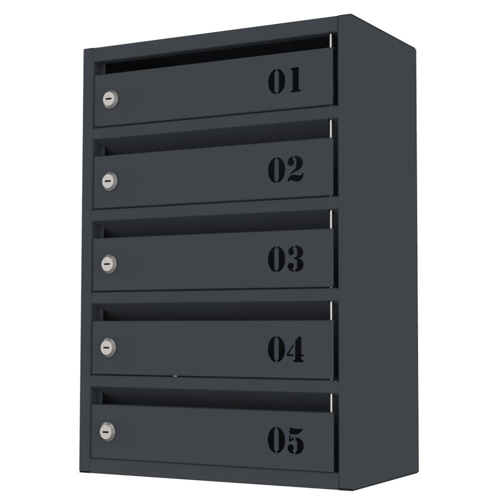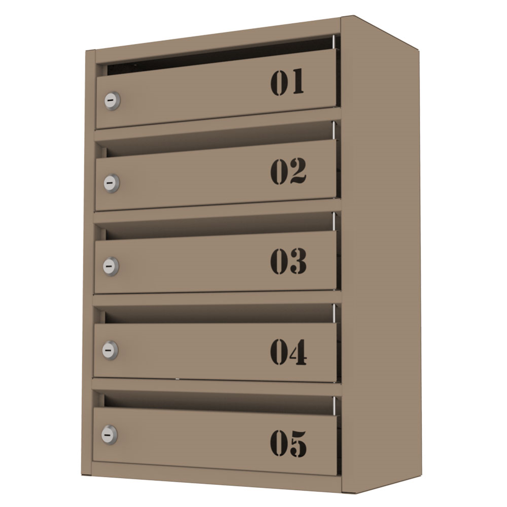 Почтовый ящик Flat (FPB-05) серии Стандарт – это пятисекционный почтовый ящик со щелевым отверстием для укладки корреспонденции или других документов в офисах, жилых домах, общественных зданиях и других местах.