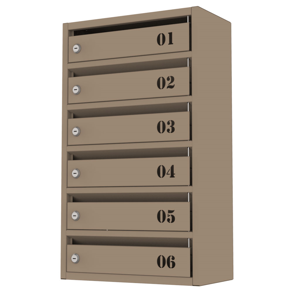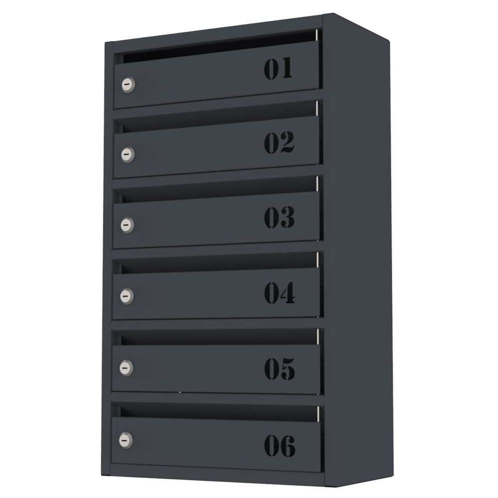 Почтовый ящик Flat (FPB-06) серии Стандарт – это шестисекционный почтовый ящик со щелевым отверстием для укладки корреспонденции или других документов в офисах, жилых домах, общественных зданиях и других местах.
