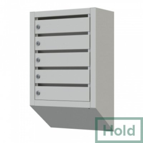 Почтовые ящики для корреспонденции и хранения бумаг серии ПЯ-5 имеет лаконичный вид, выполнен из листового металла, окрашен серой (стандартный вариант) полимерной порошковой краской. Рассчитан на пять ячеек, тип замка - ключевой.