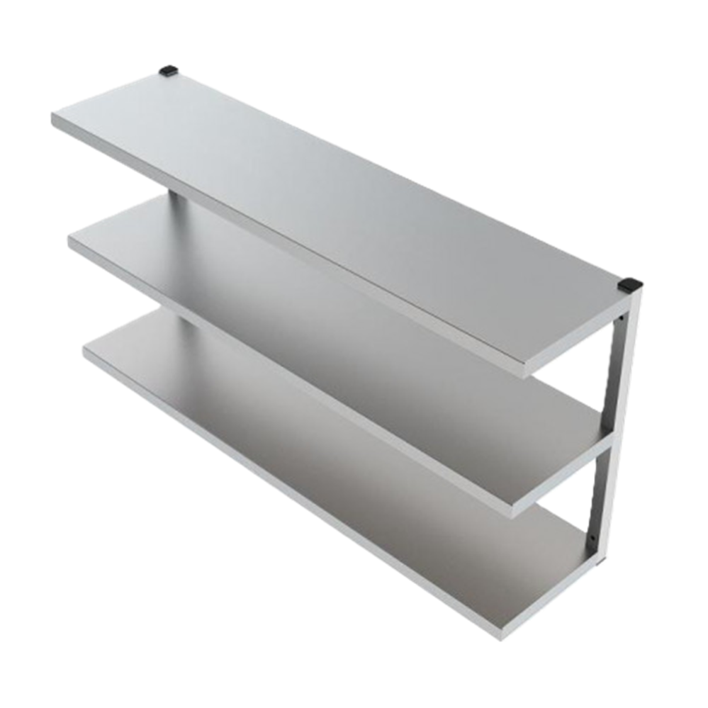 Полки могут быть одноуровневыми, двухуровневыми и трехуровневыми и изготовлены из нержавеющей стали, которая не подвержена коррозии и устойчива к механическим повреждениям, что обеспечивает её долговечность и лёгкость в уходе.