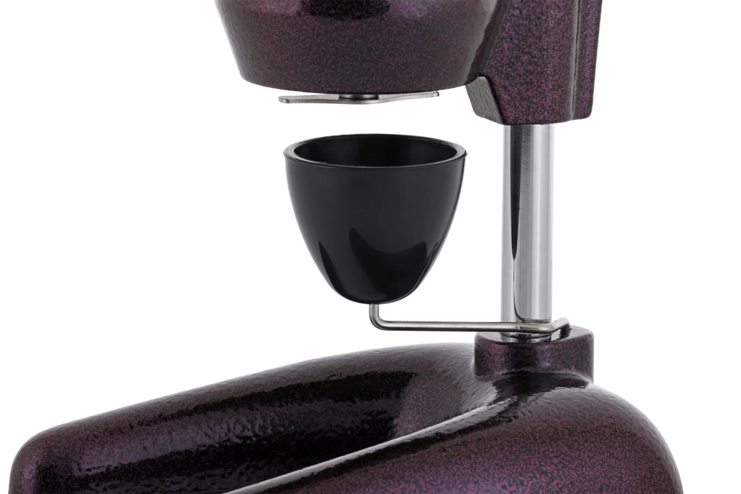 Пресс механический, настольный, не требует подключения к электричеству — прост в использовании, надежен и универсален. Чаша, ситечко и конус изготовлены из нержавеющей стали, что обеспечивает гигиеничность и долговечность. Корпус окрашен электростатической краской в элегантном оттенке кованой бронзы, что придает устройству профессиональный вид и защищает от коррозии.