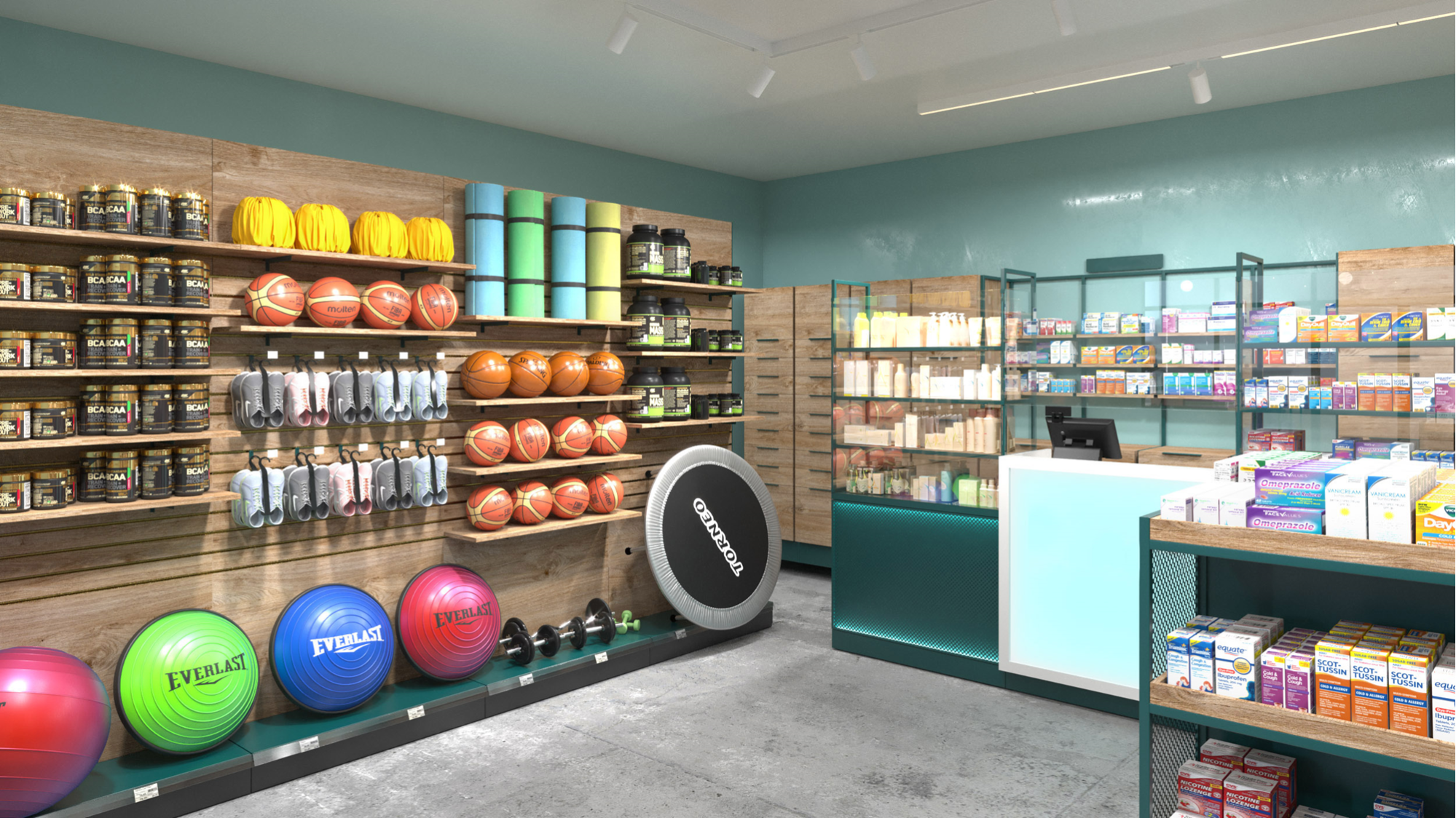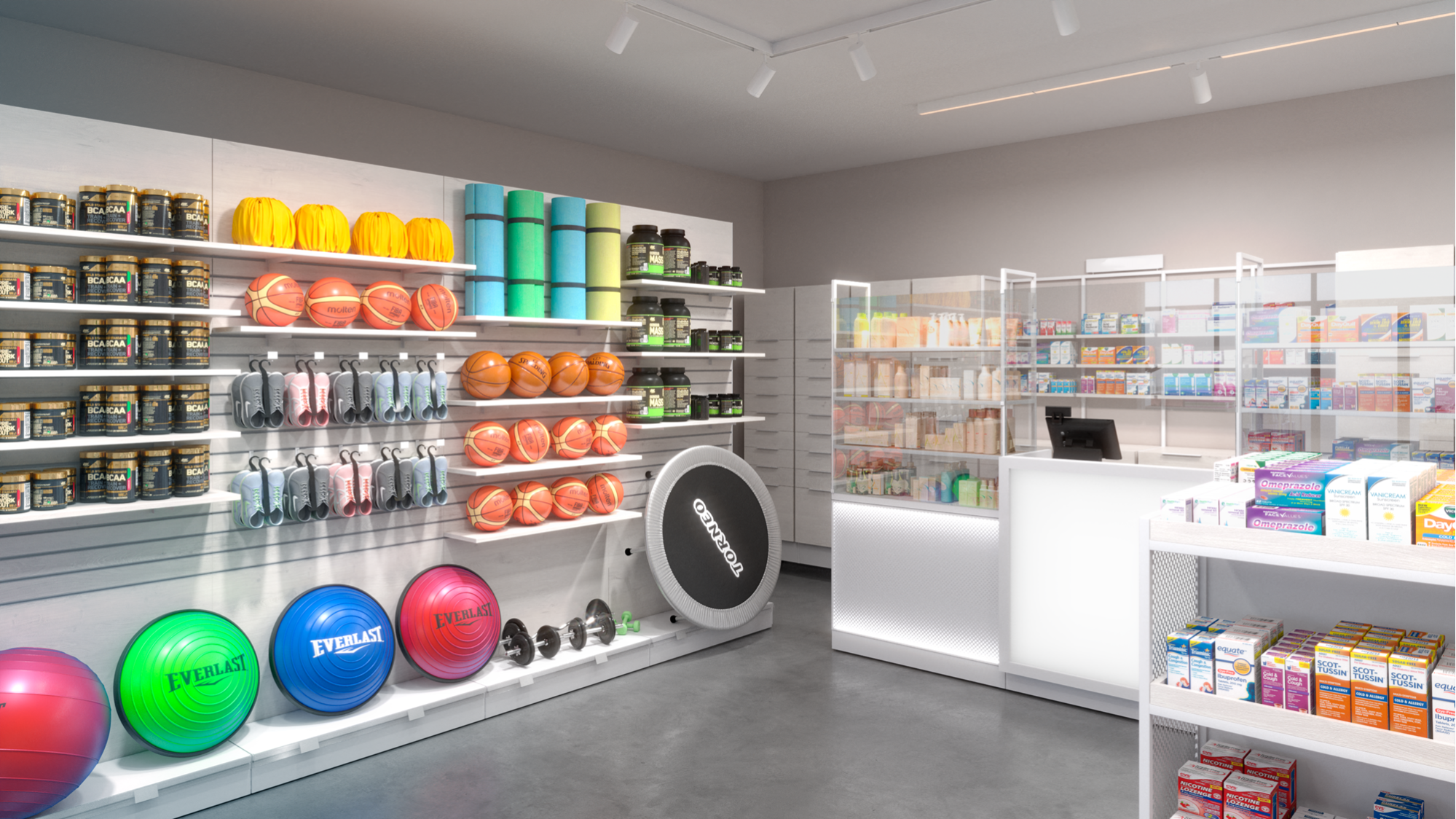 Этот тип стеллажа может быть особенно полезен в аптеках, где необходимо эффективно использовать ограниченное пространство и обеспечивать удобный доступ к разнообразным товарам.