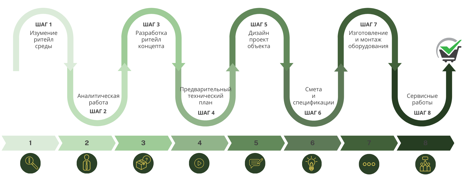 Мы проектируем, подбираем оборудование и предлагаем сервисные услуги. Решение "под ключ" включает в себя весь комплекс услуг, которые необходимы для открытия и запуска магазина любой сферы деятельности.