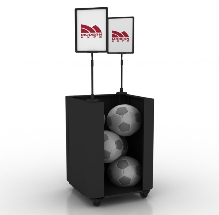 - Простота монтажа: промо-стенд должен быть легким в установке и обслуживании для упрощения процесса обновления и изменения ассортимента мячей.