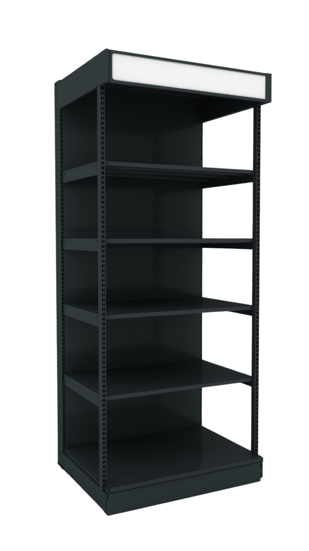 - Полки: разноуровневые полки для демонстрации продукции. Полки могут быть регулируемыми для адаптации под различные размеры товаров.