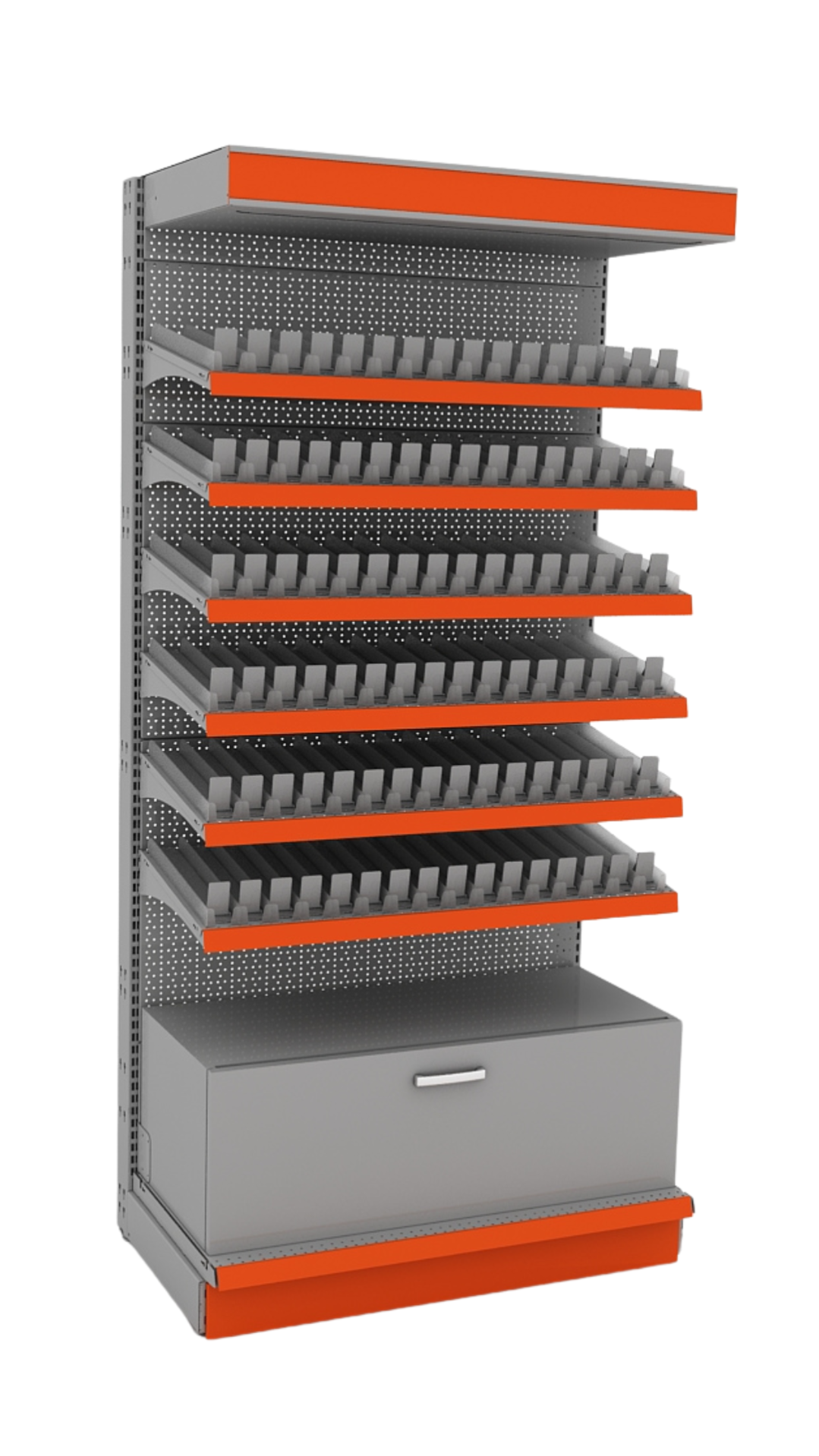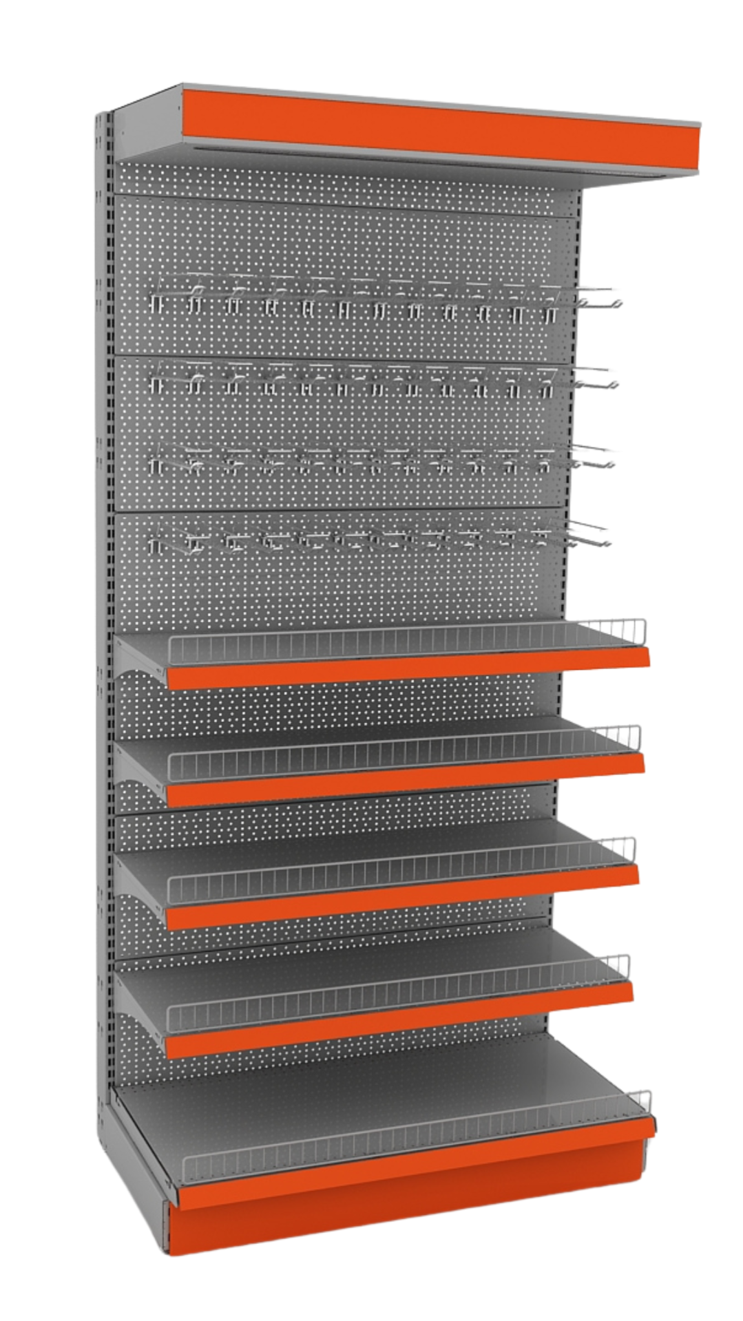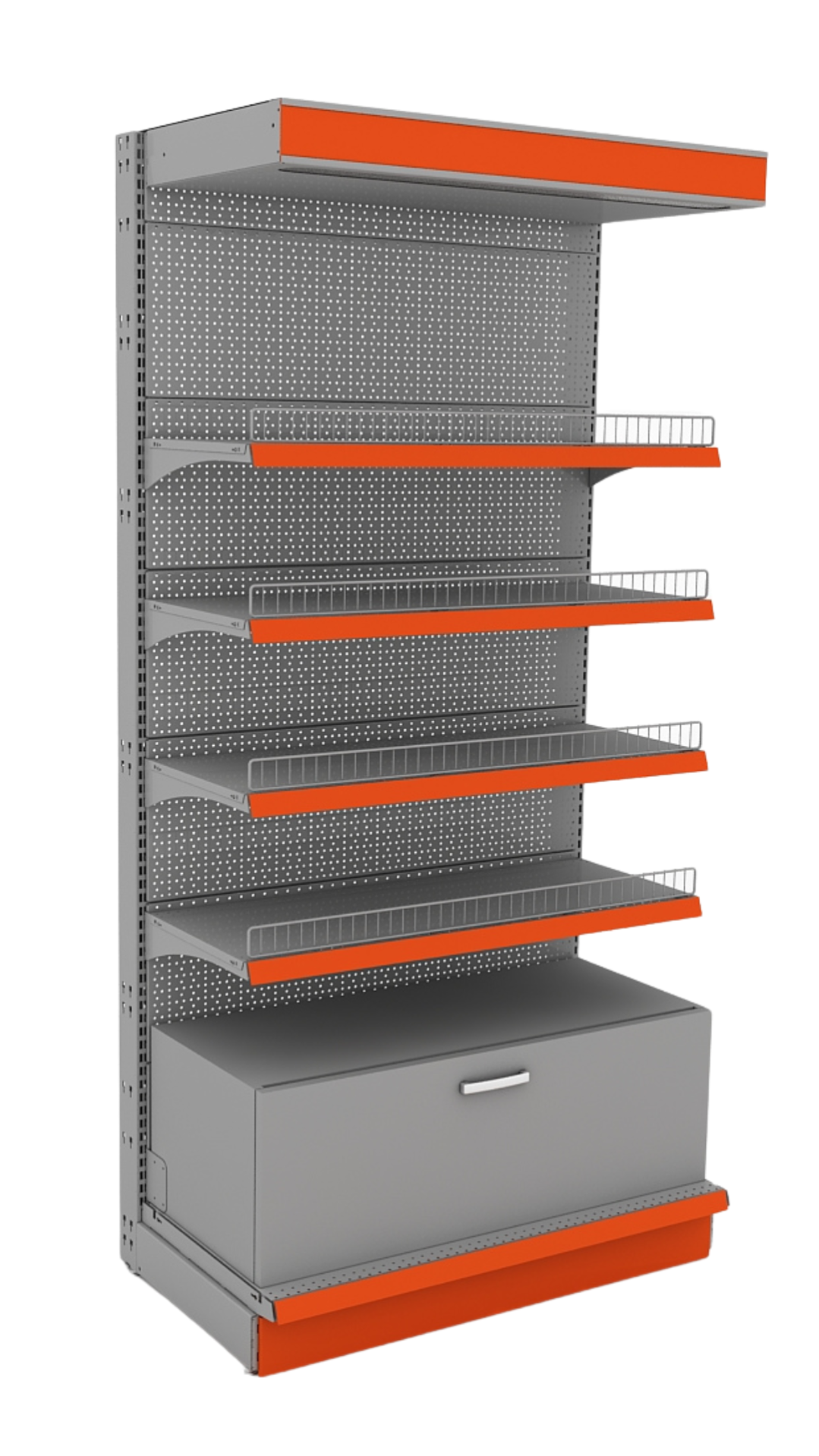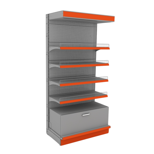 - Полки: разноуровневые полки предоставляют пространство для выкладывания продукции или демонстрации товаров. Полки могут быть регулируемыми для различных размеров товаров.
