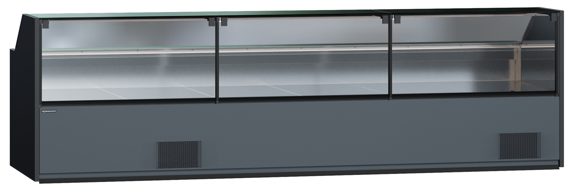 Благодаря оптимизированному размеру, данные витрины легко стыкуются между собой и образуют ряд необходимой длинны. А с наличием внешнего и внутреннего углов, такими витринами легко обыграть любое торговое пространство: обойти колонны, которые часто встречаются в магазинах либо сформировать остров из гастрономических витрин внутри торгового зала. Благодаря облегчённому монтажу, данный процесс является быстрым и не предусматривает сложностей.