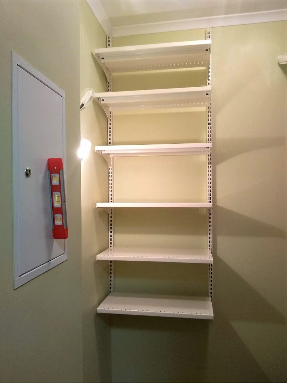 - настенная рейка для крепления стеллажа к любой вертикальной поверхности (особенно удобно, если на полу проходят коммуникации и нет возможности поставить стеллаж вплотную к стене);