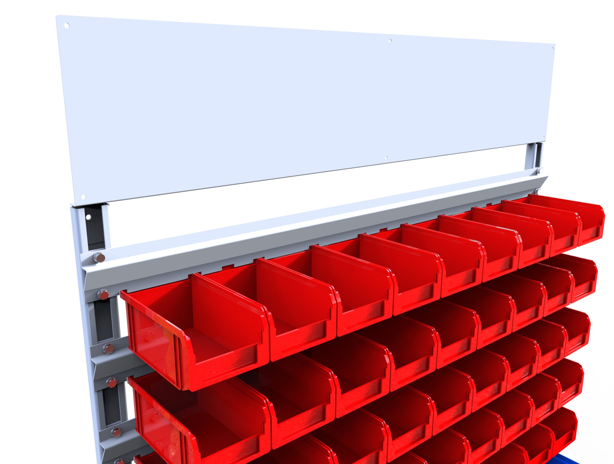 Складские ящики для хранения метизов имеют прямоугольную форму со скошенной передней частью для удобного обзора и доступа к содержимому. Снабжены держателем ярлыка для удобной идентификации содержимого. По периметру обычно имеется уголок для монтирования на стеллажи, а на задней стенке – отверстие для захвата рукой.