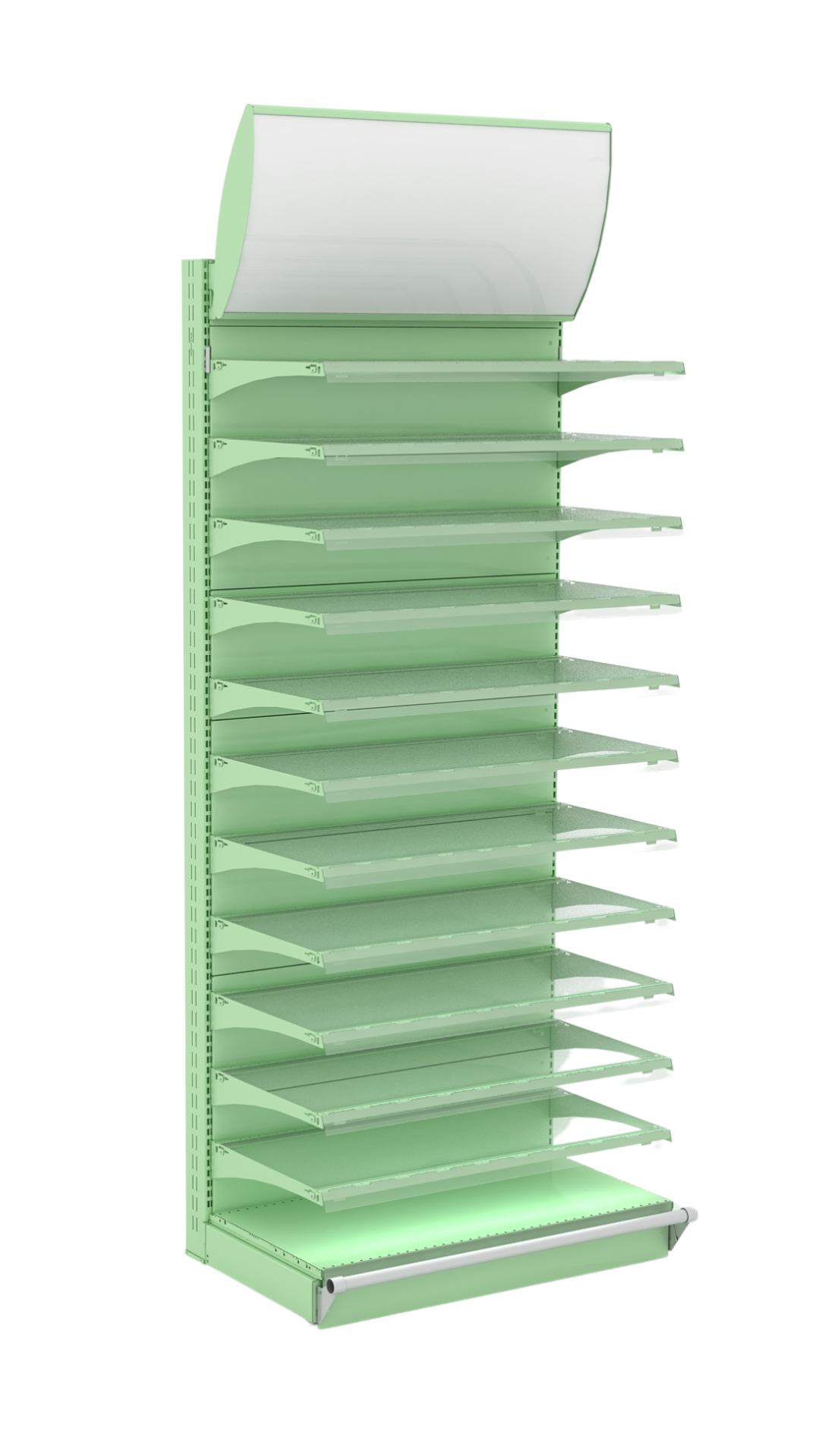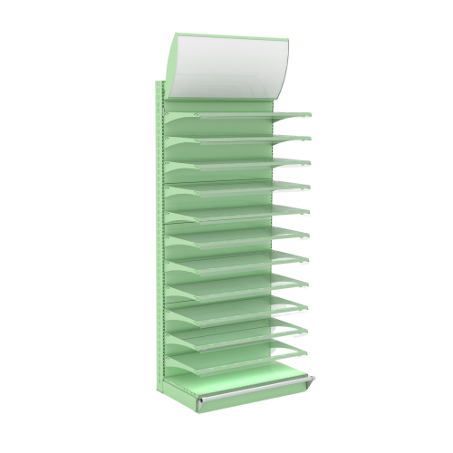 - Полки: разноуровневые полки для демонстрации продукции. Полки могут быть регулируемыми для адаптации под различные размеры товаров.