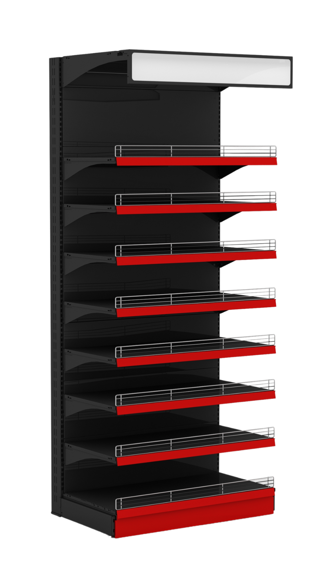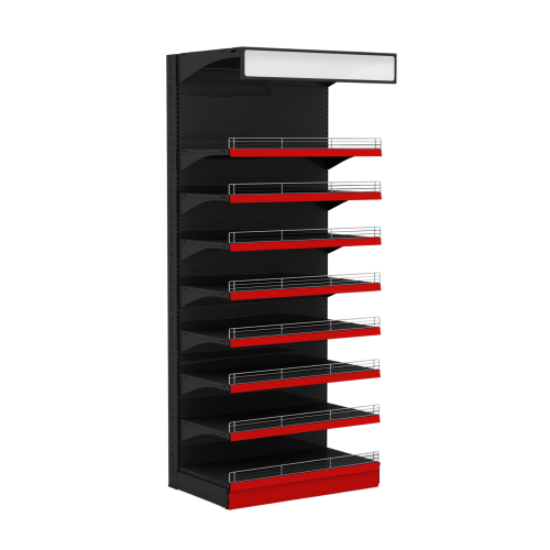 - Полки: разноуровневые полки для демонстрации продукции. Полки могут быть регулируемыми по высоте для адаптации под различные размеры товаров.