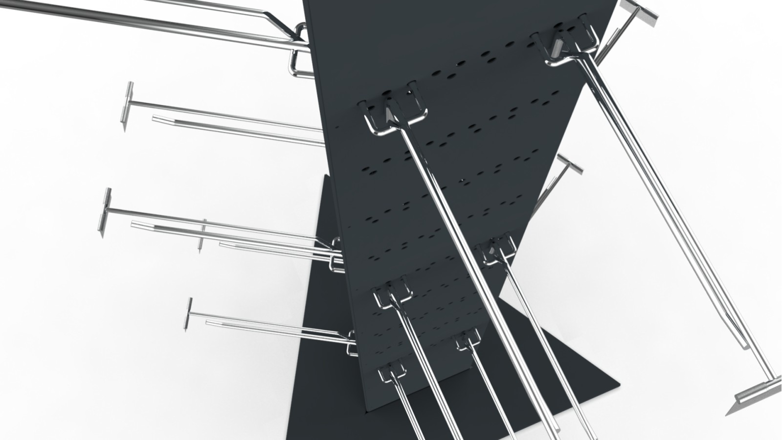 - рекламные возможности: перфорированные поверхности стойки могут использоваться для крепления рекламных баннеров, постеров или других рекламных материалов. Это предоставляет возможность эффективной рекламы в торговом пространстве.
