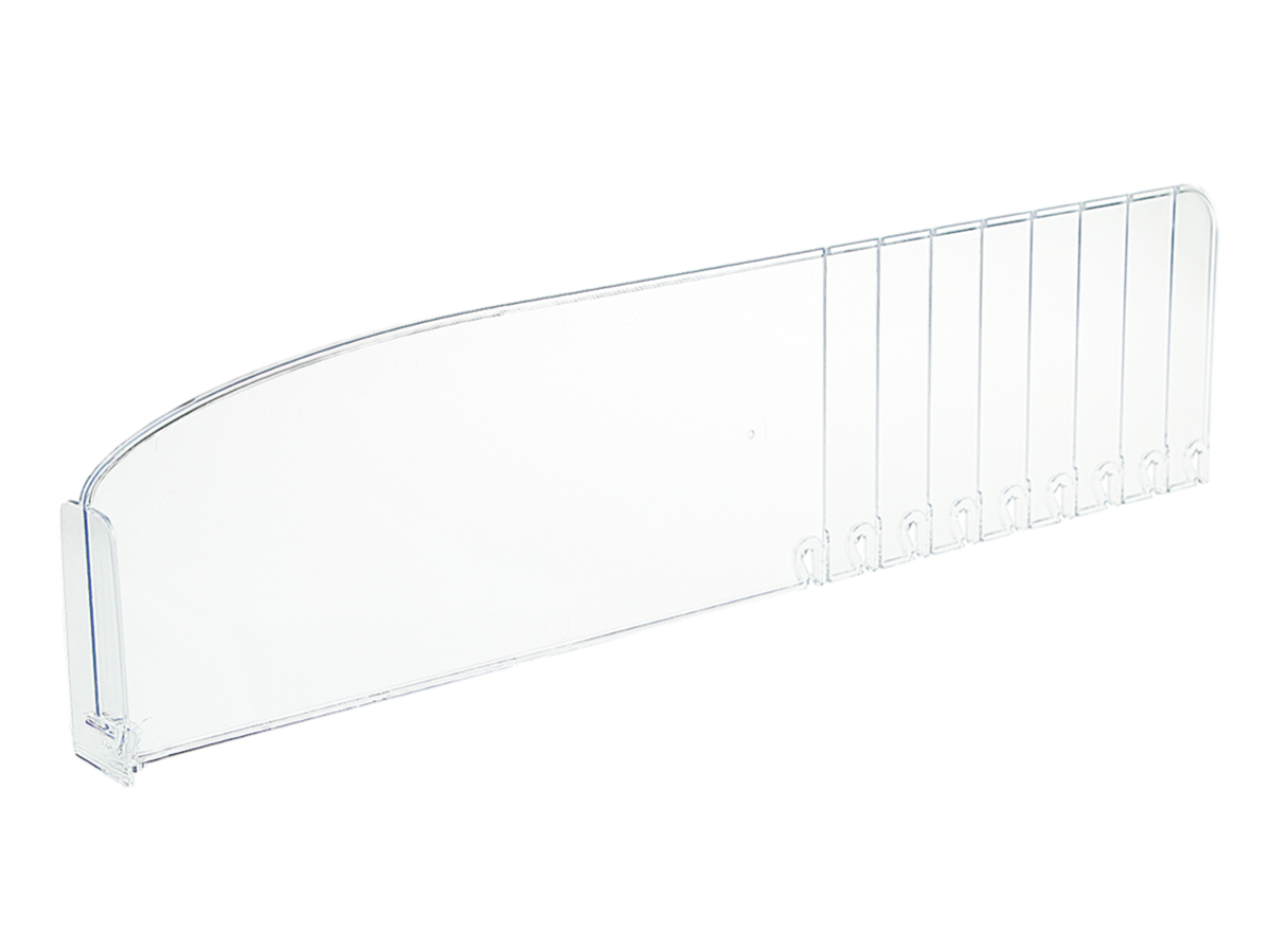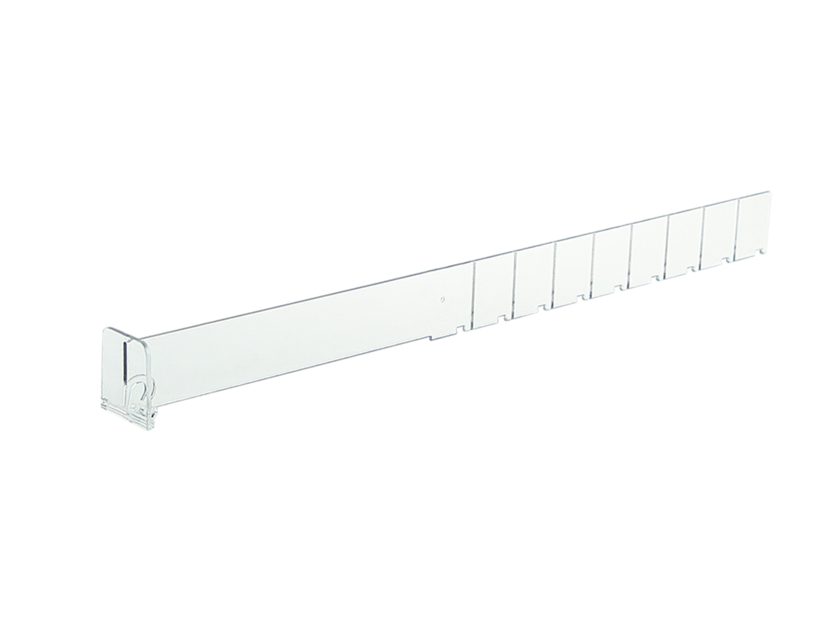 - Гибкость в использовании: благодаря насечкам с шагом 25 мм разделитель можно легко отламывать по длине, адаптируя под разную глубину полки.