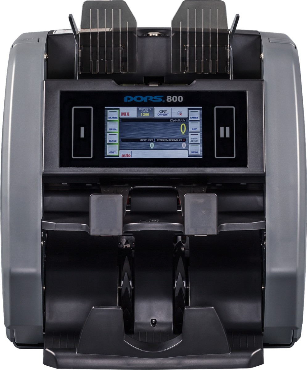 Dors 800 - счетчик банкнот с одновременной проверкой подлинности, предназначенный для точного и надежного пересчета любых объемов наличности. Модель оснащена ультрафиолетовой детекцией для выявления подозрительных банкнот, а также детекцией по оптической плотности и размеру банкнот, что позволяет в процессе пересчета выявлять "цепочки" банкнот, сдвоенные, слипшиеся, замятые банкноты, банкноты с большим отсутствующим фрагментом. Благодаря варьируемой скорости пересчета можно одинаково точно и бережно пересчитать как новые, так и ветхие купюры.
