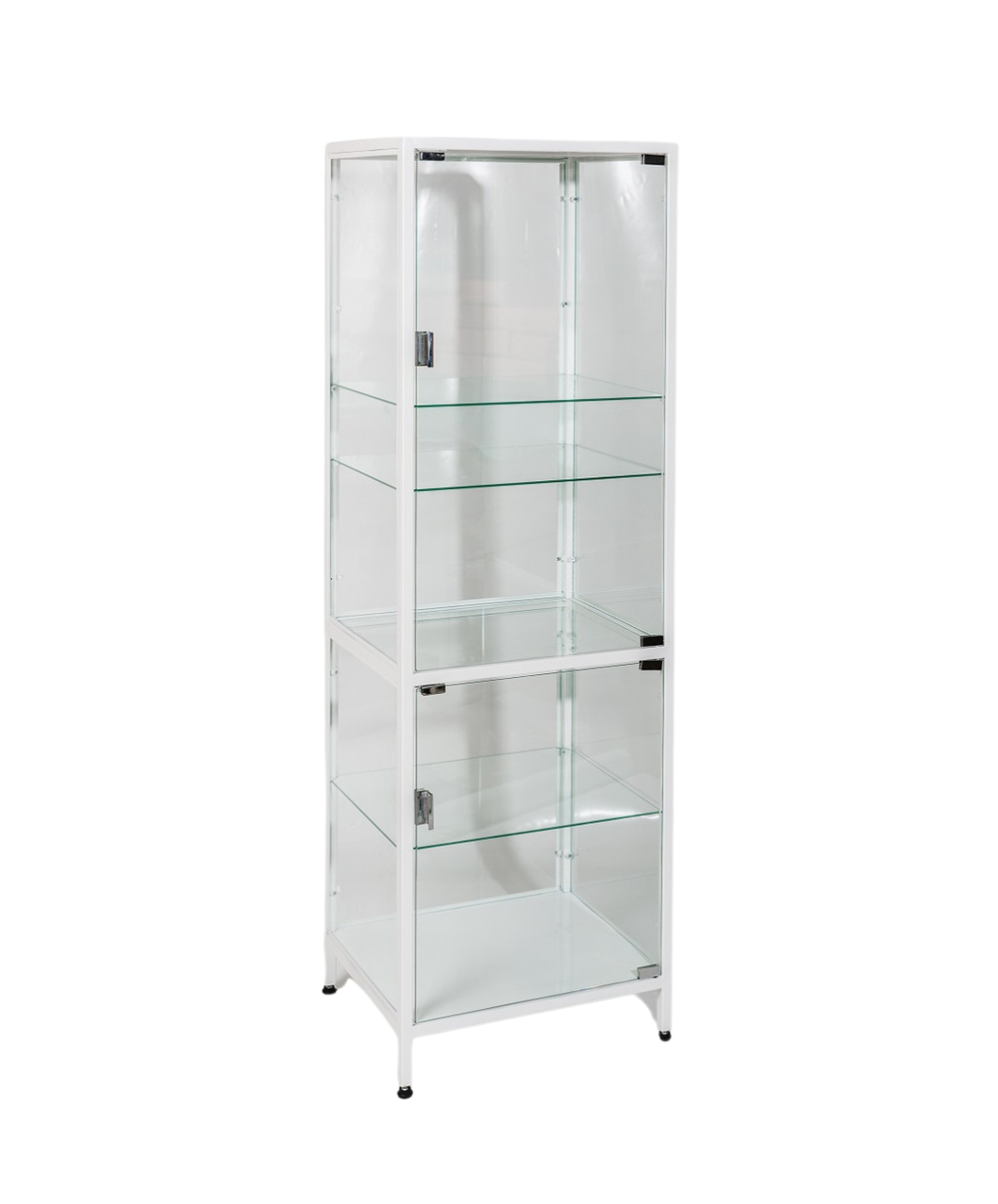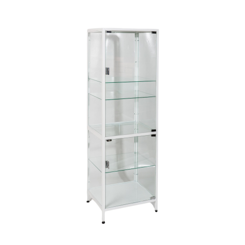 - Полностью стеклянная конструкция: шкаф имеет стеклянные двери и боковые стенки, что обеспечивает прозрачность и позволяет видеть содержимое шкафа без необходимости его открывания. Это удобно для быстрого нахождения нужных материалов и контроля за их наличием.