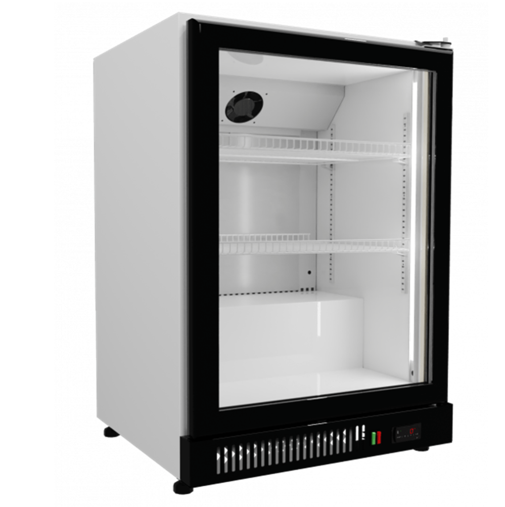 Особенностью этого шкафа является дверь – двухкамерный стеклопакет с функцией подогрева дверной рамки для предотвращения примерзания уплотнителя к корпусу шкафа и избегания запотевания. Корпус шкафа – цельнозаливной, а внутренняя поверхность выполнена из пластифицированного металла.