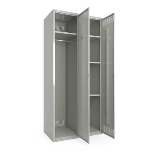Металлические шкафы для одежды – эконом серия шкафов для размещения и хранения одежды и личных веещй. Изделия изготавливаются из высококачественной стали и имеют порошковое покрытие. Имеется возможность установки дверей с односторонним открыванием и с распашным. В металлических локерах предусмотрены вентиляционные отверстия, удовлетворяющие нормам хранения одежды, спецодежды и других вещей.