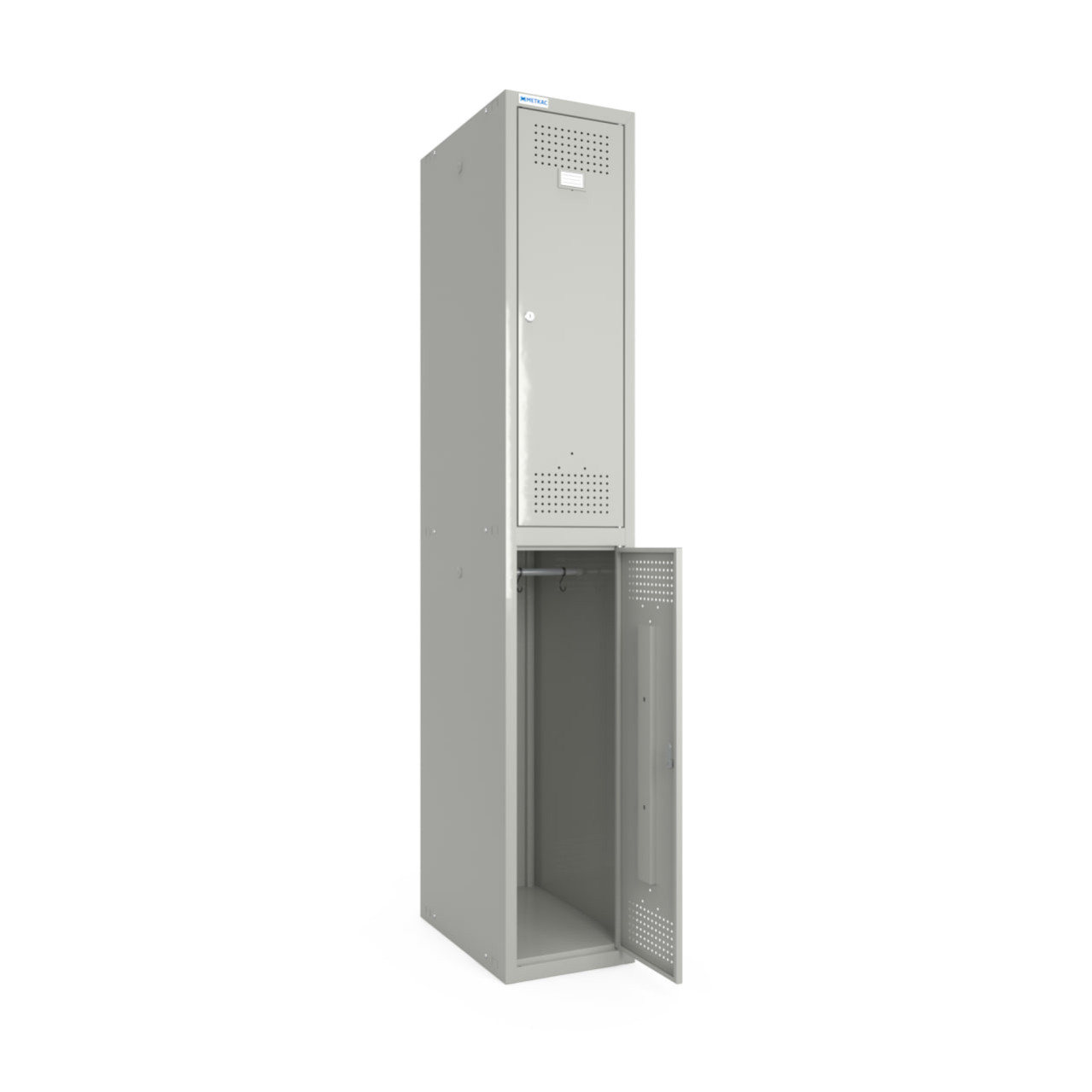 Металлические шкафы для одежды – эконом серия шкафов для размещения и хранения одежды и личных веещй. Изделия изготавливаются из высококачественной стали и имеют порошковое покрытие. Имеется возможность установки дверей с односторонним открыванием и с распашным. В металлических локерах предусмотрены вентиляционные отверстия, удовлетворяющие нормам хранения одежды, спецодежды и других вещей.
