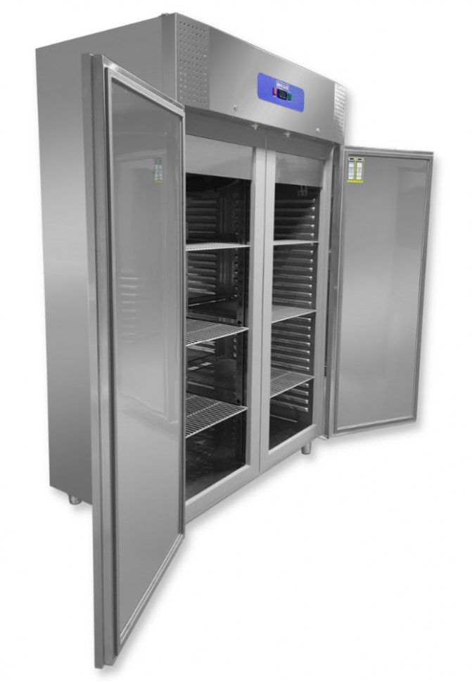 Холодильный шкаф BRILLIS является двухдверным, что позволяет вместить большой объем продукции. В каждом отделении 14 уровней для дек, поэтому есть возможность регулировки высоты и количества для удобства использования. В комплекте присутствует 6 полок размером 530х650 (емкость GN 2/1). Обеспечивается исправная работа при температуре окружающей среды: до +43°C и влажности 65%.