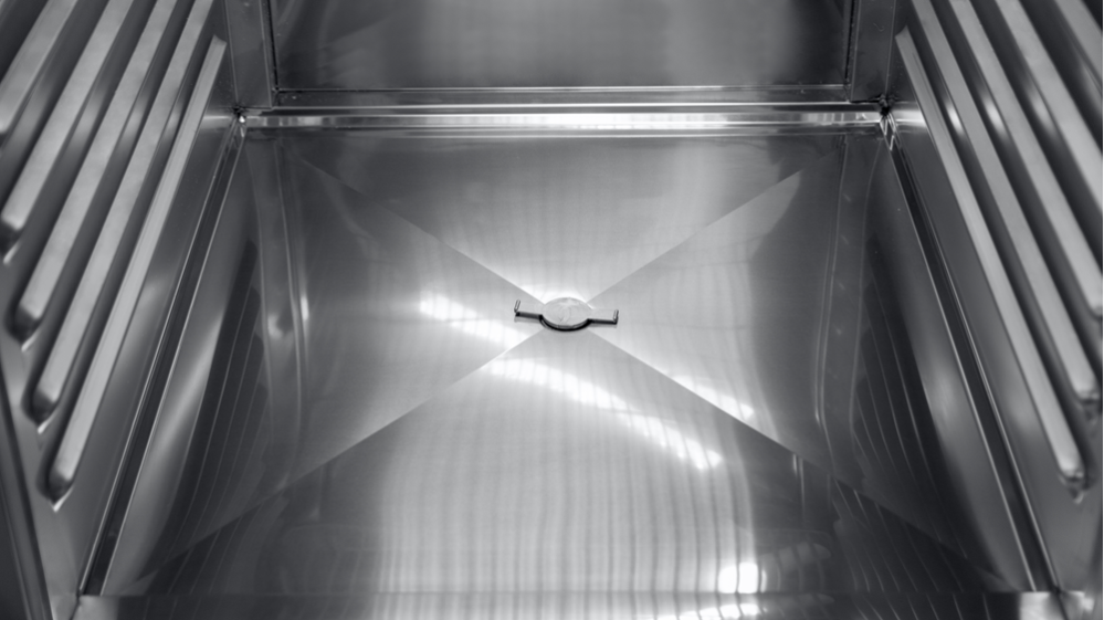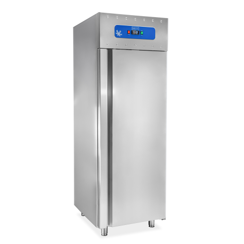 Шкаф оборудован распашной дверью, общий объем 700 л. Температурный режим от –2 до +8 °С. Температура регулируется цифровым дисплеем. Корпус и ножки изготовлены из высококачественной нержавеющей стали. Ножки регулируются по высоте. Установлены съемные магнитные уплотнители, позволяющие без труда их чистить.