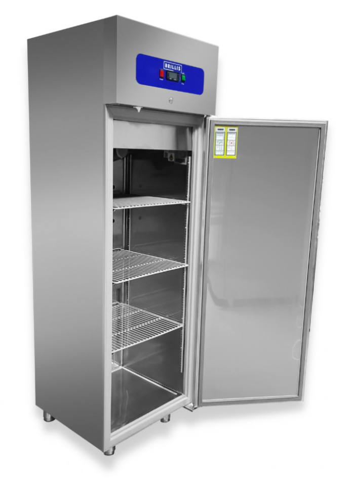 Шкафы-морозильники BRILLIS обладают динамической системой охлаждения, то есть с помощью вентиляторов внутри обеспечивается равномерная температура на всех полках. Такой тип охлаждения отлично подходит для хранения рыбы, мяса или замороженных овощей и фруктов. Присутствует система автоматического оттаивания. Оборудование имеет четыре ножки, которые регулируются по высоте, например в случае неровной поверхности.