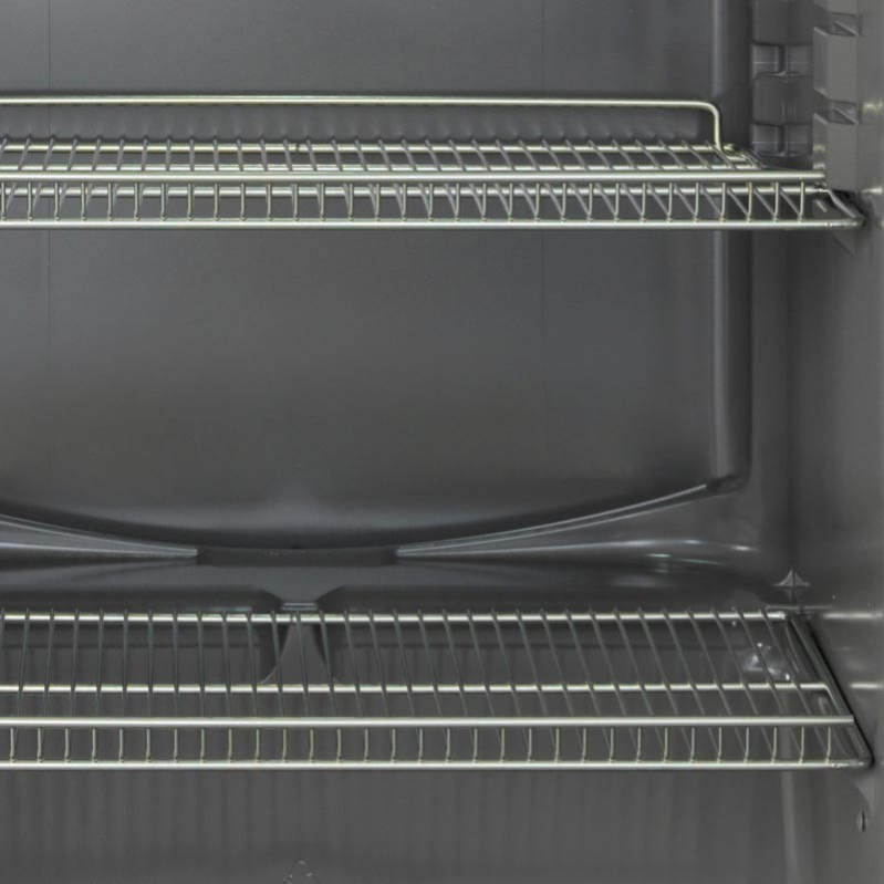 Статическая система охлаждения обеспечит энергоэффективное охлаждение и бесшумную работу. Продукты внутри камеры будут охлаждаться от – 0°C до +8°C. Это позволяет хранить огромное количество продуктов питания: картофель, овощи, мясные полуфабрикаты, сыр, консервы, всевозможные напитки. Все их будет легко и удобно загружать на прочные регулируемые проволочные полки. Каждая полка выдерживает вес 50 кг. Поэтому продукты можно размещать вместе с упаковками и коробками.