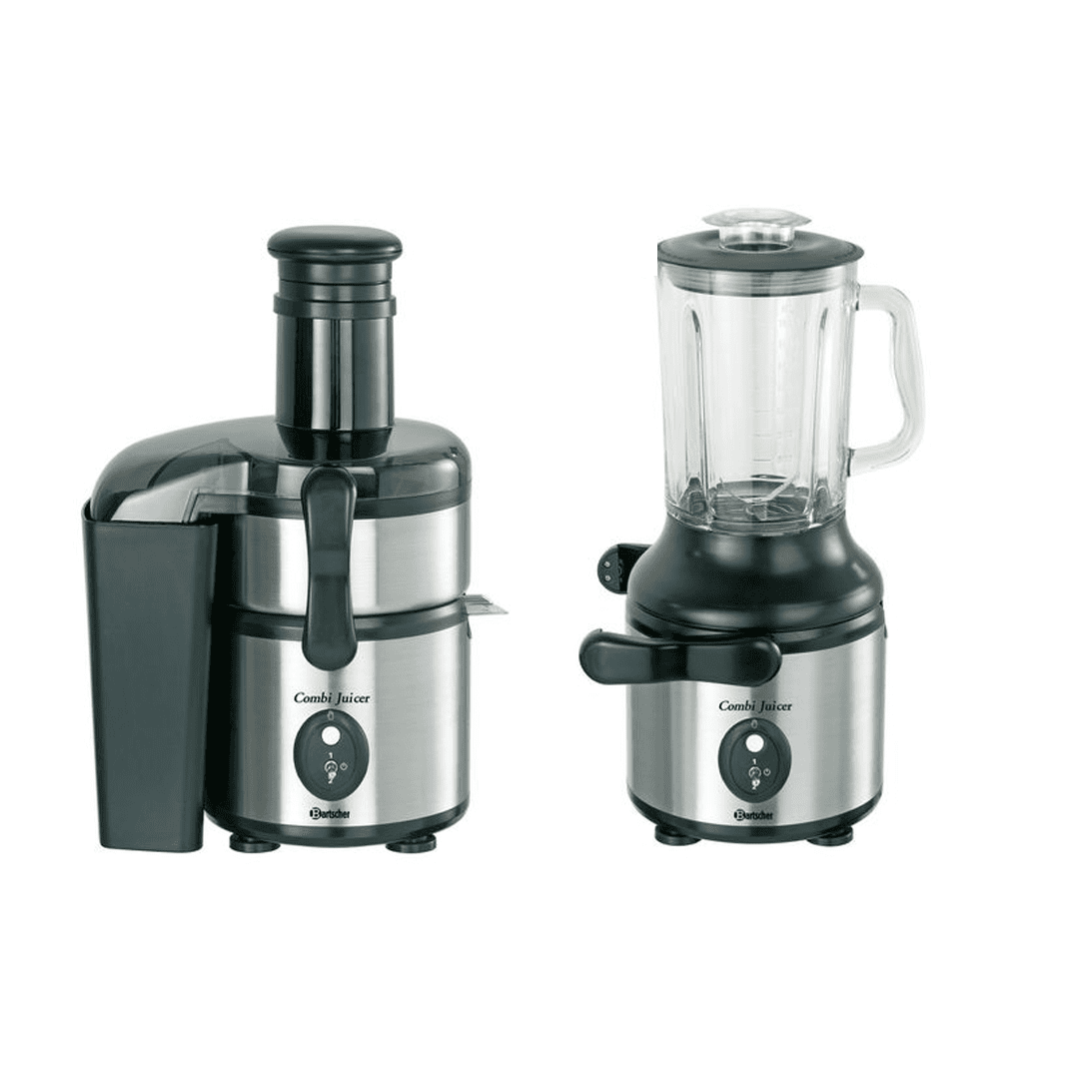 Профессиональная соковыжималка и блендер Bartscher Combi Jucer в одном комплекте. Трудно придумать что-то удобнее в работе кафе или бара, а комплектация аппарата окончательно делает выбор только в сторону этой модели. Два в одном!
