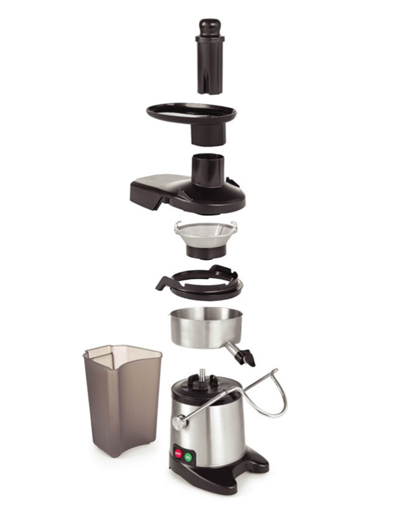 Уровень шума во время работы составляет 72 дБ на холостом ходу, что делает работу аппарата комфортной для персонала. Встроенная защита от перегрева автоматически выключает двигатель при достижении температуры 125 °C, что продлевает срок службы устройства. Благодаря резиновым ножкам соковыжималка устойчиво держится на поверхности и не скользит во время работы.
