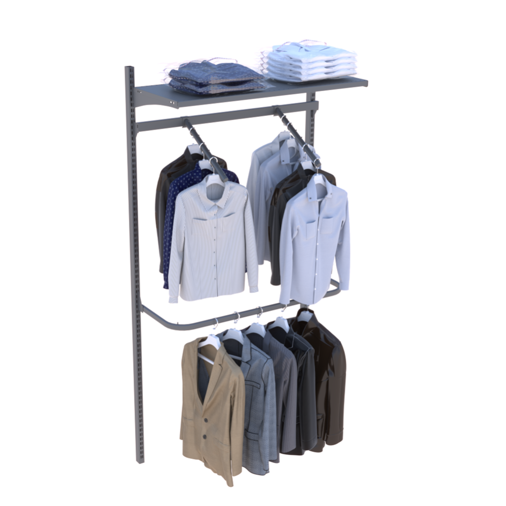 Стеллаж настенный металлический для одежды Тип 1 2134х1000х300 мм с металлической полкой цвет RAL 7016 (антрацит)