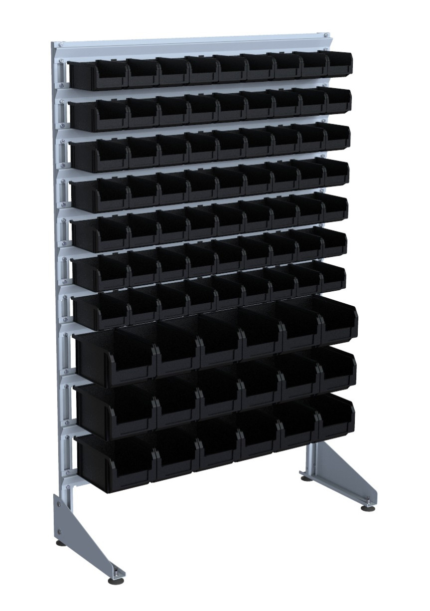 Продуманная конструкция метизного стеллажа позволяет обеспечить быстрый доступ к размещенным на ней вещам, а также их хорошую обзорность. Благодаря опорной стойке стеллаж для метизов 1500 мм наполнение 3/7 (черный) является устойчивым. Его легко можно разметить в том месте, где это будет удобно. Комплектация такого оборудования может быть изменения благодаря полкам, корзинам и прочим дополнительным аксессуарам.