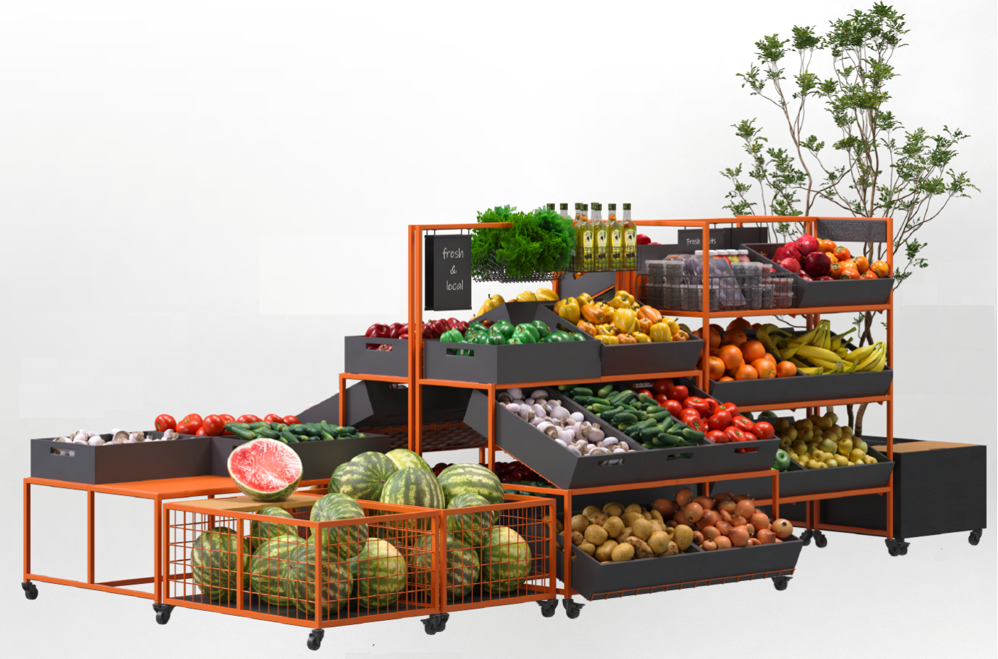 Такой элемент оборудования для магазина позволяет разместить овощи аккуратно. Это создает упорядоченный вид, привлекая внимание покупателей и стимулируя продажи.