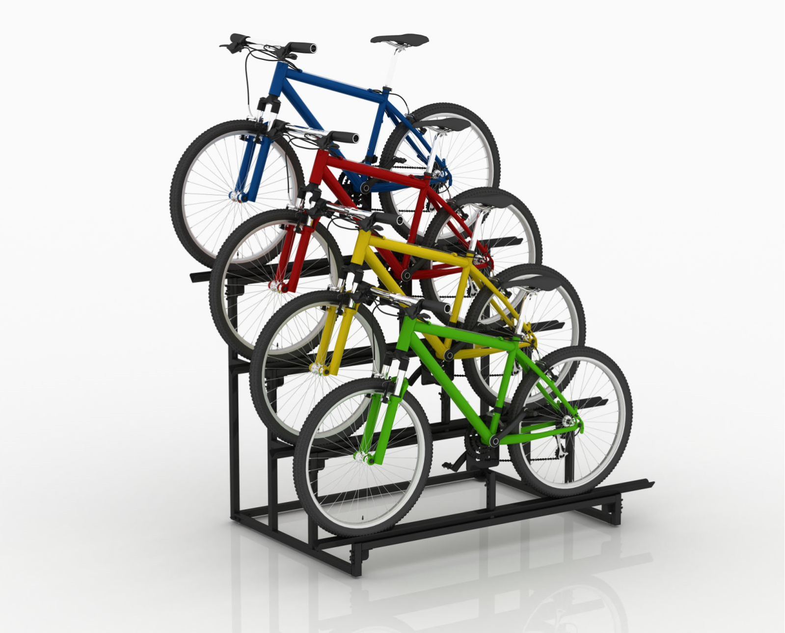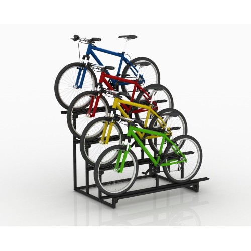 - Вертикальная подставка: каждый велосипед размещается вертикально на специальной подставке, что обеспечивает компактное и пространственно-эффективное размещение.