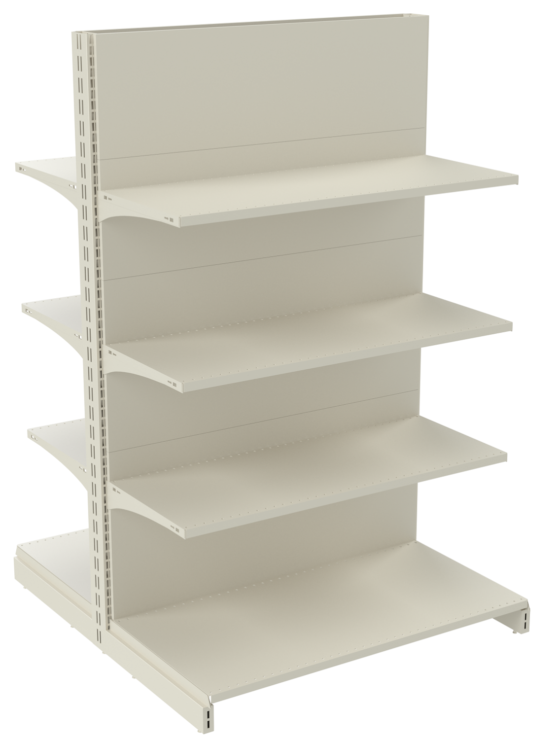 5. Полки – основная часть для выкладки товара на островной стеллаж. Устанавливаются полки на двухсторонние стеллажи с помощью кронштейнов, которые крепятся в пазы на торце вертикальных стоек. Кронштейны могут быть как статичными перпендикулярными, так и фиксироваться под определенными углами (угол может быть выбран заказчиком).