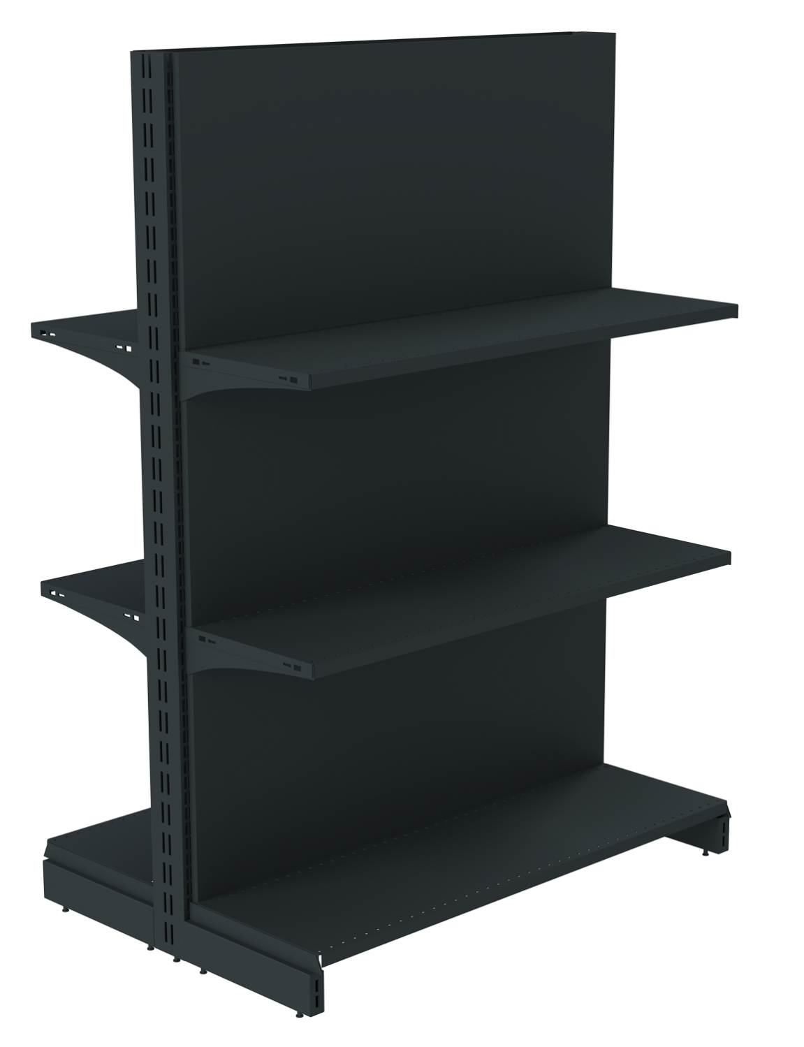 Торговые двухсторонние стеллажи могут использоваться для создания длинного ряда для разделения торгового зала на зоны. Однако стоит учесть, что вам понадобиться стеллаж островной двухсторонний торцевой для замыкания ряда подобного оборудования.