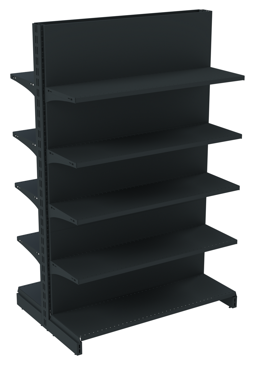 Торговые двухсторонние стеллажи могут использоваться для создания длинного ряда для разделения торгового зала на зоны. Однако стоит учесть, что вам понадобиться стеллаж островной двухсторонний торцевой для замыкания ряда подобного оборудования.