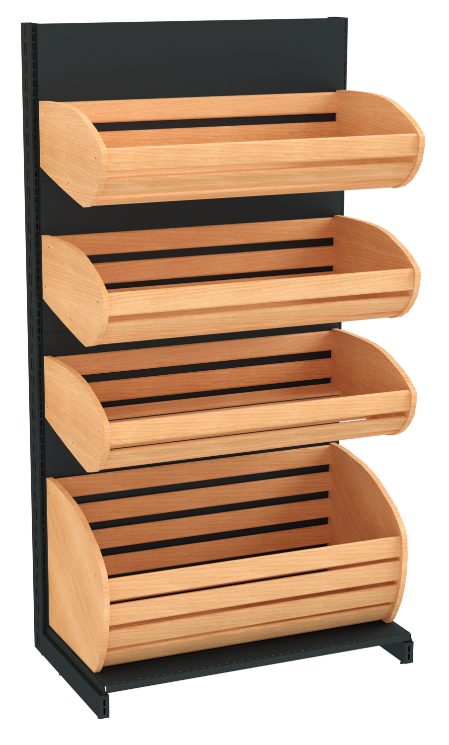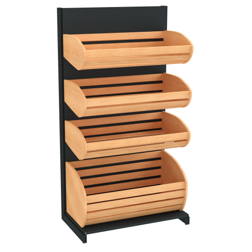 Хлебные стеллажи отличаются от аналогичного торгового оборудования наличием аккуратных, вместительных и красивых деревянных корзин для хлеба. Они размещаются на приемлемой для покупателей высоте, а также позволяют предоставить свободный доступ к хлебобулочным изделиям. Хлебный стеллаж из дерева достаточно практичный и многофункциональный. Он обладает красивым внешним видом, который способствует повышению лояльности у покупателей и увеличению продаваемости.