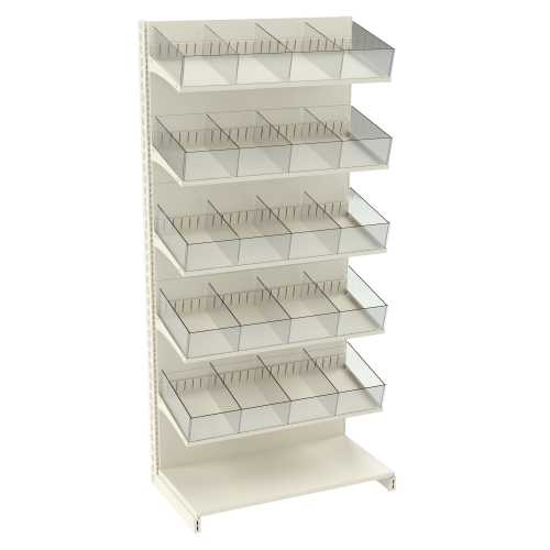- «Книжная» полка – данный вид предназначен для выкладки товара, расфасованных в коробки или имеющих продолговатую плоскую форму (коробки конфет, шоколадки и т.п.) для их наглядной демонстрации покупателям;