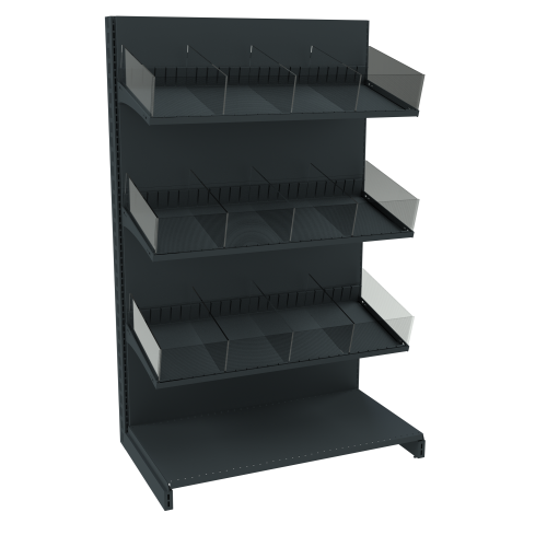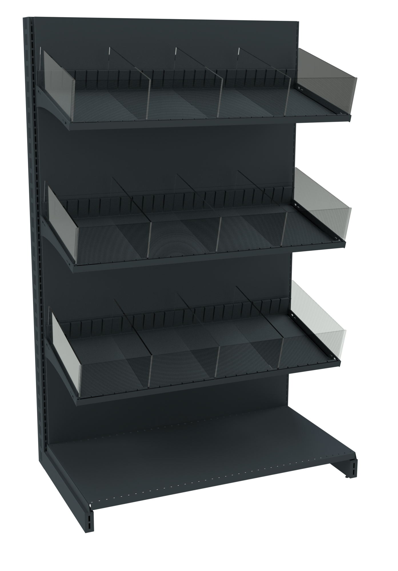 - «Книжная» полка – данный вид предназначен для выкладки товара, расфасованных в коробки или имеющих продолговатую плоскую форму (коробки конфет, шоколадки и т.п.) для их наглядной демонстрации покупателям;